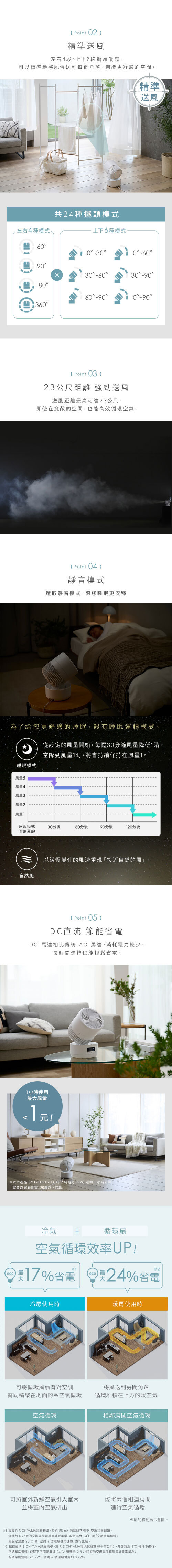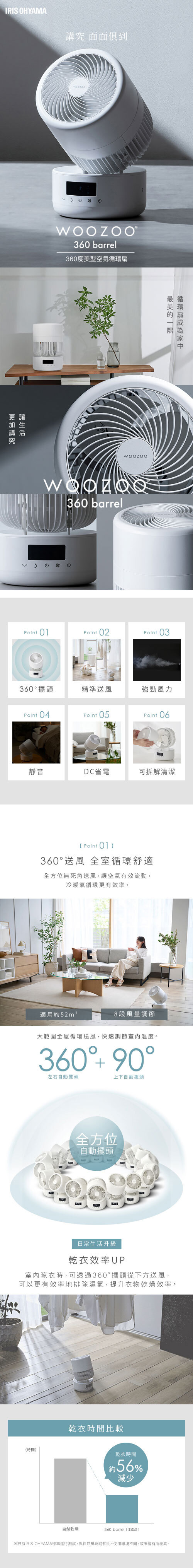 ● 360 度立體擺頭|全方位空氣循環