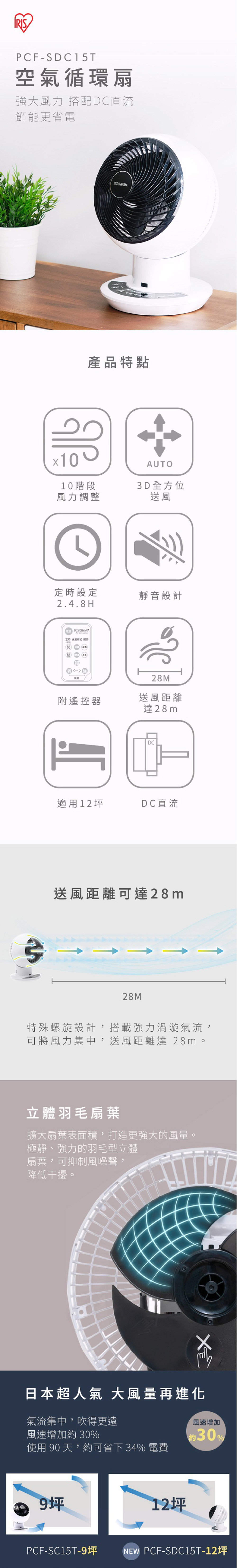 ● 3D立體擺頭|上下左右自動送風